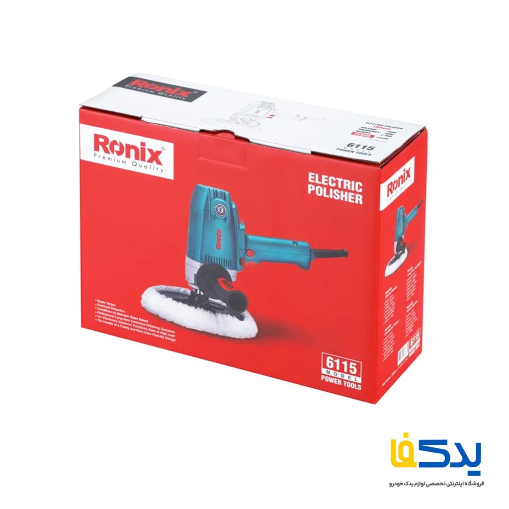دستگاه پولیش رونیکس مدل 6115 با قدرت 1050 وات است. همچنین حداکثر قطر صفحه این دستگاه معادل 180 میلی متر است. این دستگاه قابلیت تنظیم سرعت 6 حالته دارد و سرعت گردش آزاد آن به 2000_600 دور در دقیقه می رسد. دستگاه پولیش 6115 دارای موتور پر قدرت صنعتی تولید شده تحت استاندارد CE اروپا بوده و با ولتاژ ورودی 220 ولت از برق شهری تغذیه می کند. همچنین این ابزار با وزن تقریبی 2.2 کیلوگرم مجهز به دسته جانبی جهت تسلط بیشتر است. لازم به ذکر است در این دستگاه از گیربکس صنعتی و بلبرینگ های ضد غبار به جهت دوام و عمر بیشتر طراحی و تولید شده است.