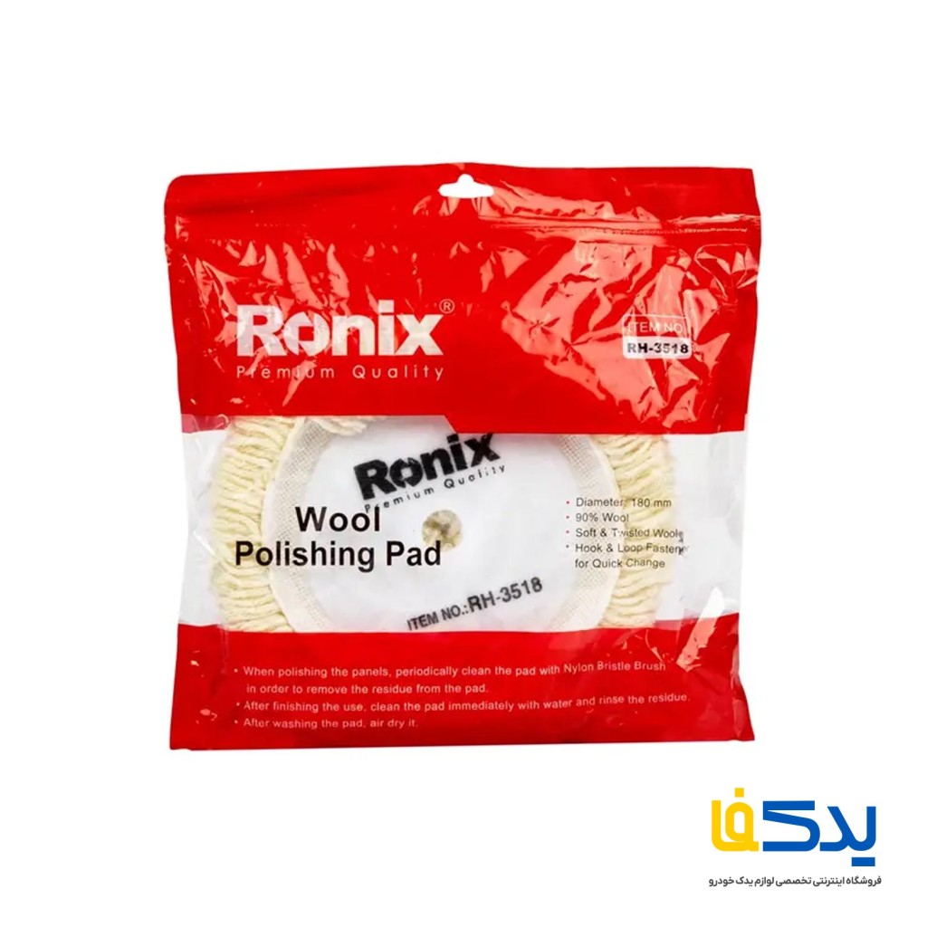 پد پولیش رونیکس مدل RH-3518 یک ابزار حرفه ای برای پولیش خودرو و سطوح فلزی است. قطر آن حدود 180 میلی متر است و سطح آن از پشم مصنوعی یا طبیعی فشرده، ساخته شده تا قدرت پاک کنندگی بالایی داشته باشد.طراحی چسبی آن امکان سریع و محکم روی دستگاه را فراهم می کند. این پد تعادل خوبی دارد و لرزش را کاهش می دهد تا پولیش یکنواخت و دقیق انجام شود.