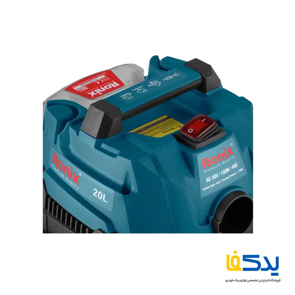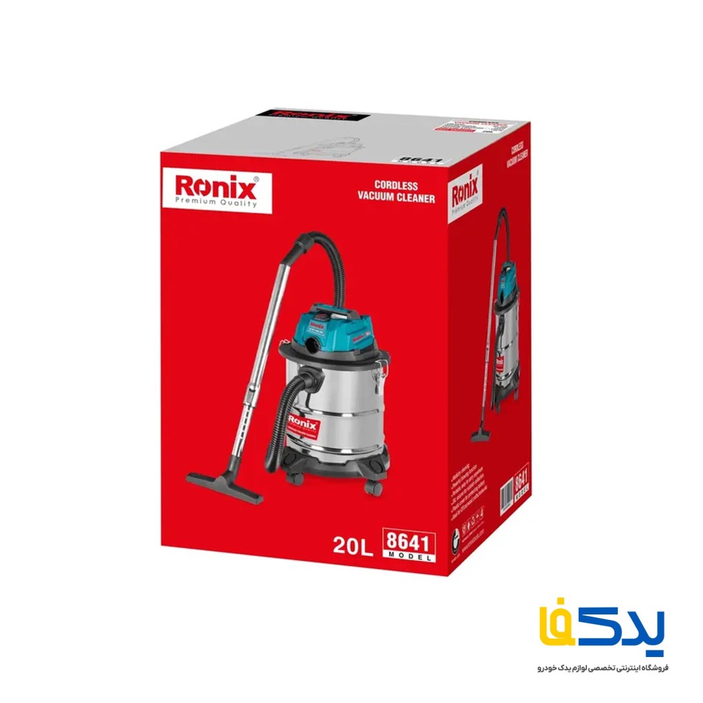 جارو شارژی 20 لیتری رونیکس مدل 8641 دارای توان 20 ولت برای جمع آوری خشک و تر، دستگاهی قابل حمل دارای چرخ برای حمل و نقل آسان، دارای قابلیت نظافت سطوح خشک و مرطوب، دارای مکش فوق العاده و همچنین دارا بودن در پوش پلاستیکی روی باتری برای جلوگیری از نفوذ آب به داخل باتری را می توان از ویژگی های مهم این جارو شارژی عنوان کرد. این جاروی پر قدرت شارژی مناسب فعالیتهای خانگی، تمیز کاری اتومبیل و… است.