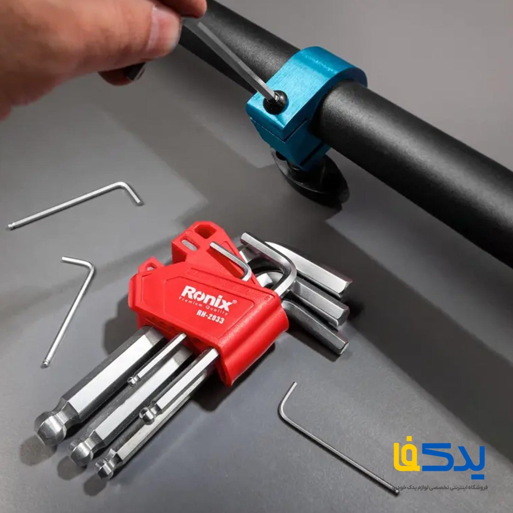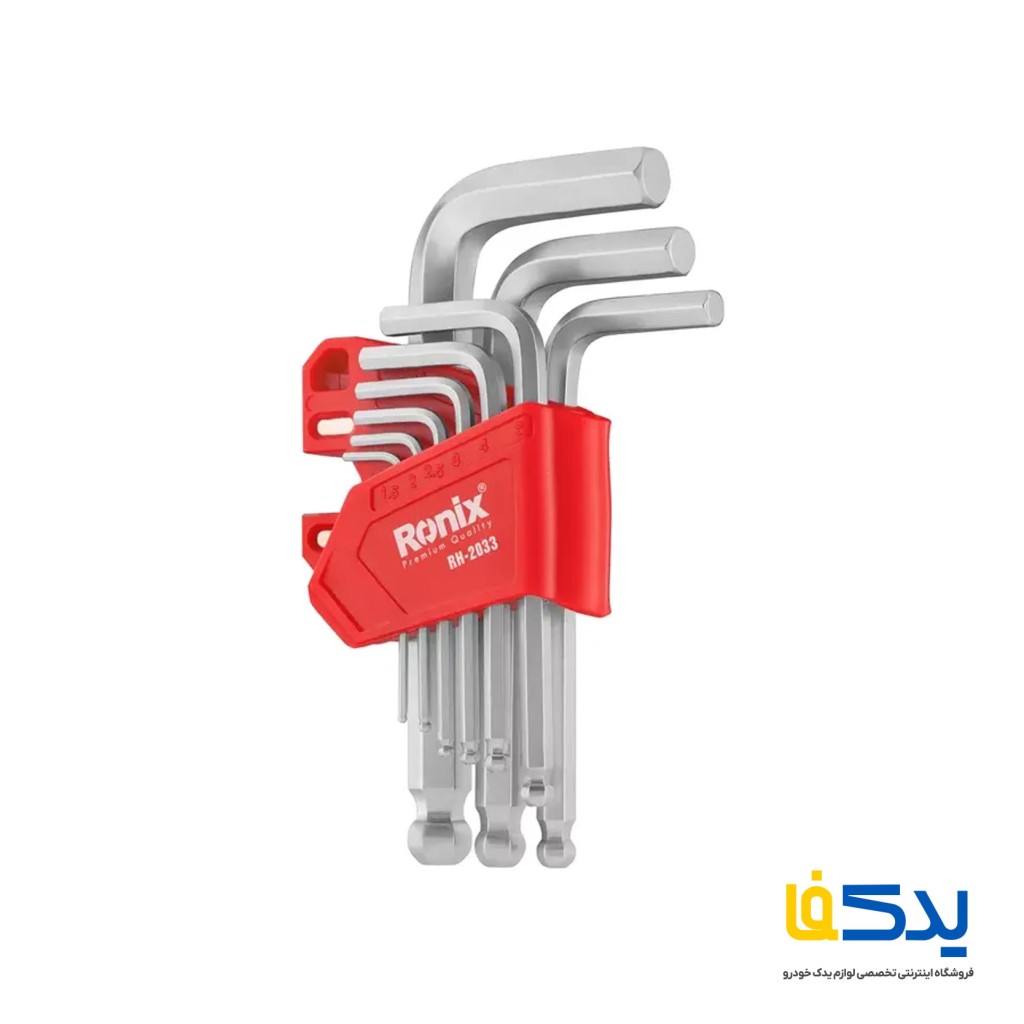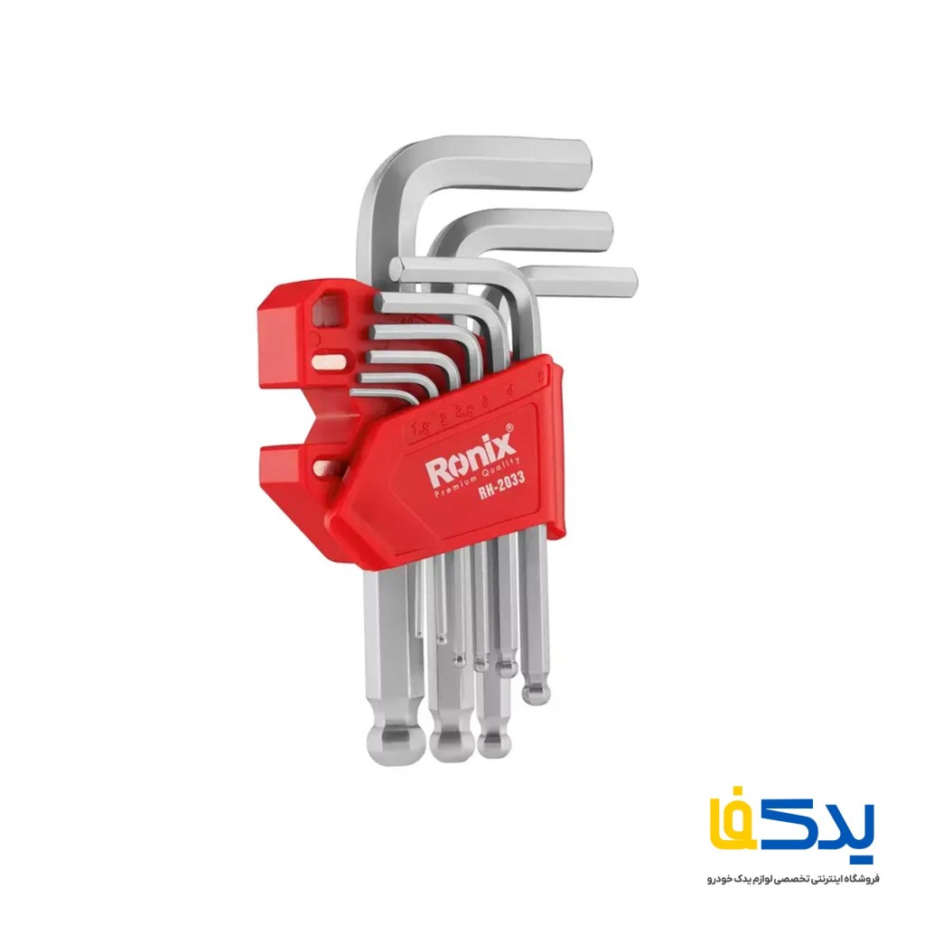 مجموعه 9 عددی آچار آلن کوتاه رونیکس مدل RH-2033 یک انتخاب کاربردی برای باز و بسته کردن انواع پیچ های شش گوش در فضاهای محدود است. این ست از فولاد کروم-وانادیوم مقاوم ساخته شده تا در برابر فشار و زنگ زدگی دوام بالایی داشته باشد. طراحی ارگونومیک و طول کوتاه آچارها، کنترل و دسترسی آسان تری را در محیط های فشرده فراهم می کند. این مجموعه شامل سایزهای 1.5، 2، 2.5، 3، 4، 5، 6، 8 و 10 میلی متر است. آچارها درون یک پایه پلاستیکی مقاوم و منظم قرار گرفته اند تا حمل و نگهداری آن ها ساده تر باشد.