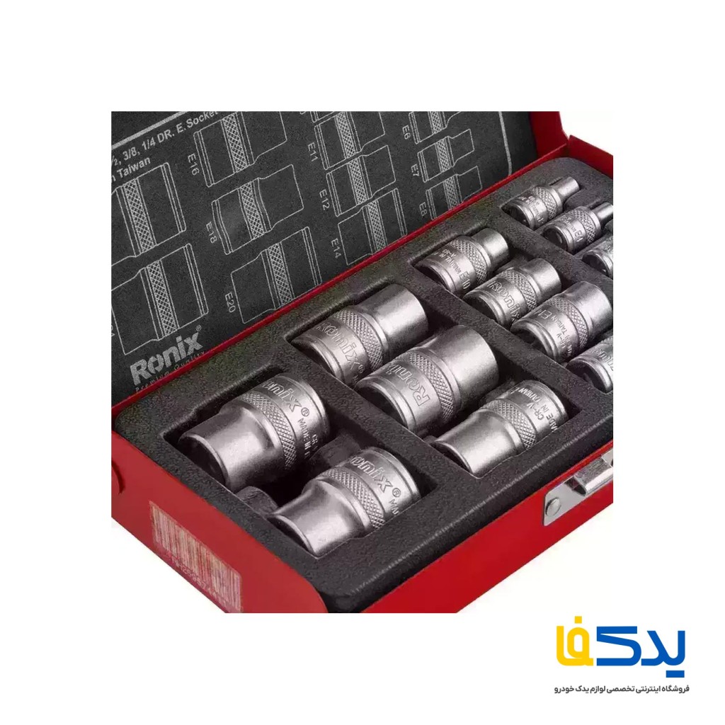 مجموعه 14 عددی آچار بکس ترکیبی رونیکس مدل RH-2695، ابزاری همه کاره برای کارگاه و تعمیرات حرفه ای است. هر آچار از فولاد کروم‑وانادیوم ساخته شده تا در برابر فشار و زنگ زدگی مقاومت بالایی داشته باشد. طراحی ترکیبی آن ها امکان استفاده به صورت سر بکس یا سر ثابت را فراهم می کند و کار با پیچ ها را راحت تر می سازد. این مجموعه شامل سایزهای ۶، 7، 8، 9، 10، 11، 12، 13، 14، 15، 16، 17، 18 و 19 میلی متر است. تمامی آچارها در یک پایه نگهدارنده منظم قرار دارند که حمل و دسترسی به آن ها را سریع و آسان می کند.