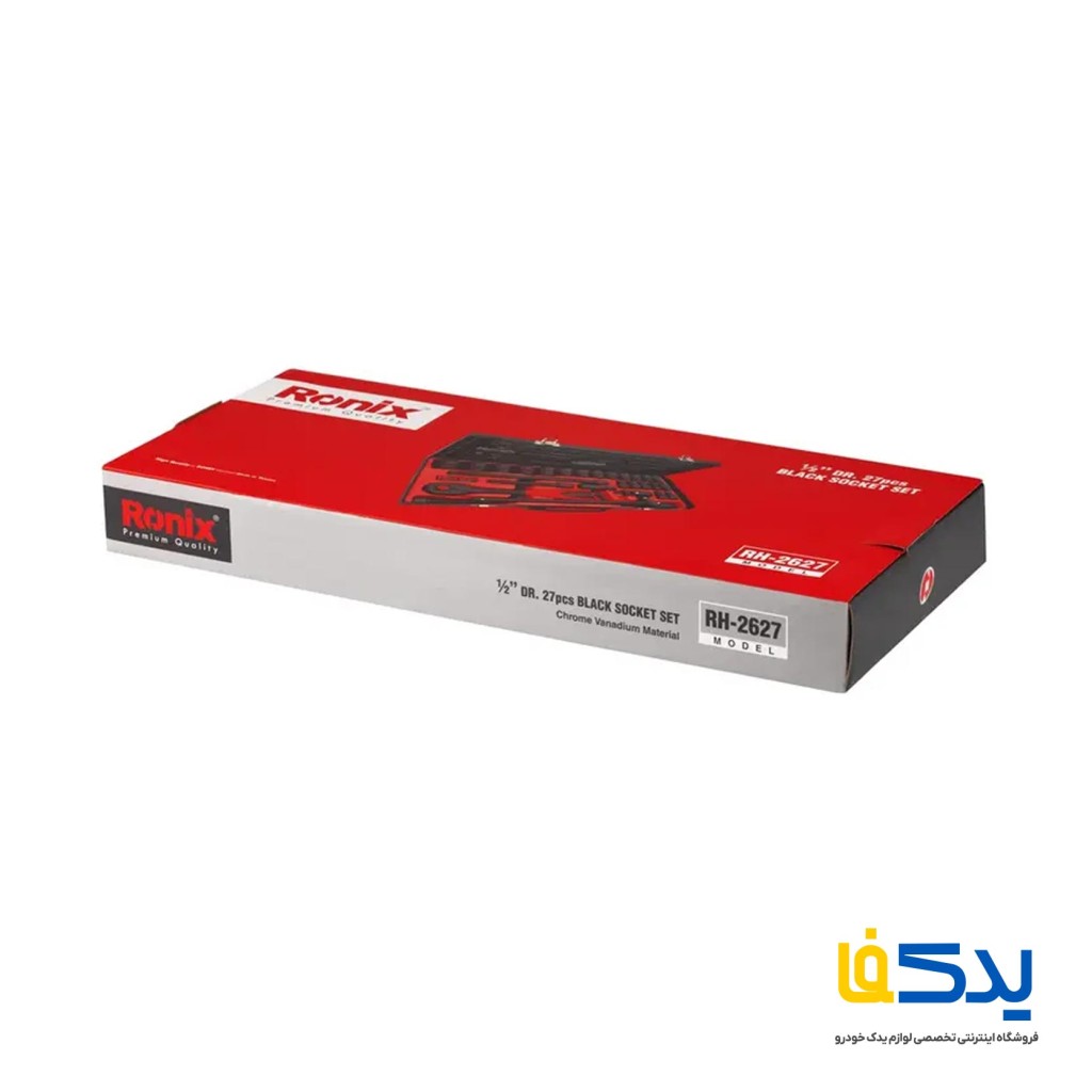 مجموعه 27 عددی آچار بکس رونیکس مدل RH-2627 شامل 20 بکس متریک در سایزهای 10، 11، 12، 13، 14، 15، 16، 17، 18، 19، 20، 21، 22، 23، 24، 25، 26، 27، 30 و 32 میلی متر است. این مجموعه علاوه بر این، دارای بکس شمع 16 میلی متری، دو افزونه (5 و 10 اینچی)، یک جغجغه ی 1/2 اینچی با 72 دندانه و مکانیسم رهاسازی سریع، یک دسته T و مفصل گردان است. بکس ها از آلیاژ کروم-وانادیوم محکم ساخته شده اند و با پوشش کروم مشکی در برابر زنگ زدگی محافظت شده اند.