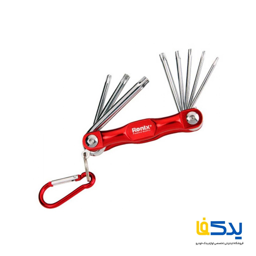 مجموعه 8 عددی آچار آلن ستاره ای فانتزی رونیکس مدل RH-2041، بدنه سبک آلومینیومی و سری های فولادی کروم-وانادیوم حرارت دیده، مقاومت بالایی در برابر خوردگی و زنگ زدگی دارند. این آچارها در سایزهای پرکاربرد T9، T10، T15، T20، T25، T27، T30، T40 ارائه شده و برای انواع کارهای فنی و تعمیراتی ابزاری ایده آل است.