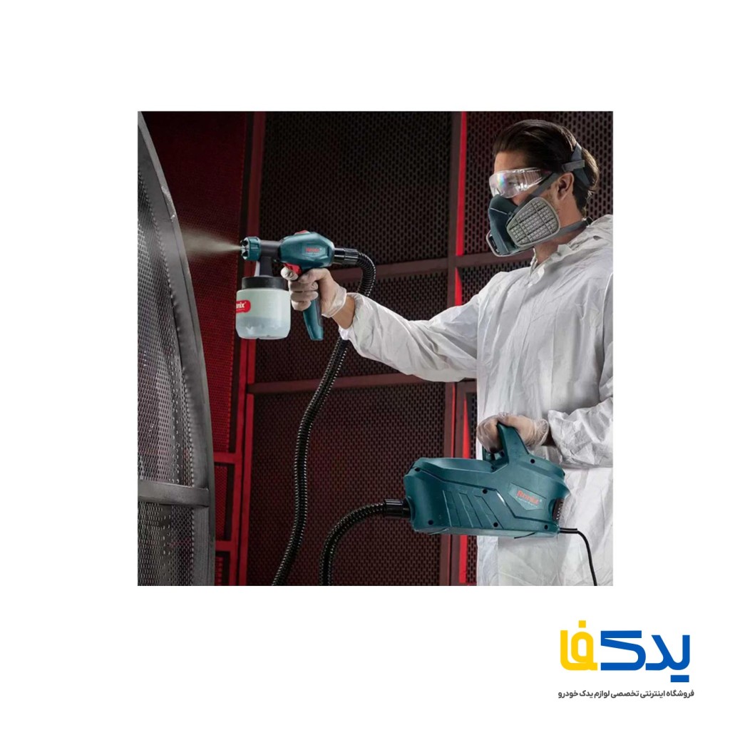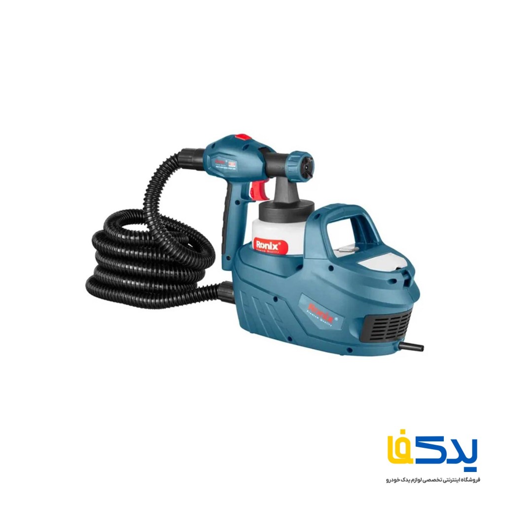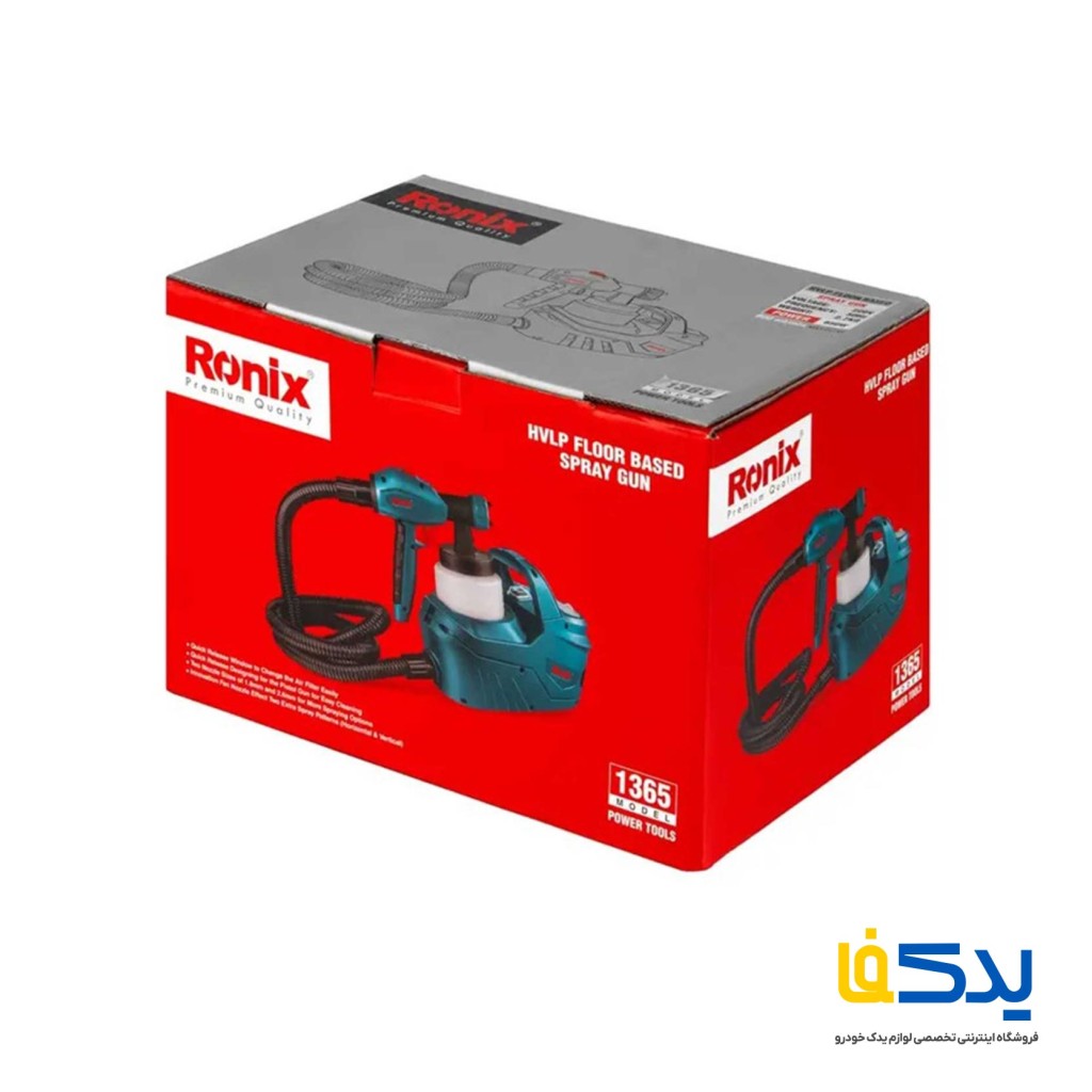پیستوله برقی 650 وات رونیکس مدل 1365، مناسب برای انجام کارهای رنگ آمیزی هم در فضای باز و هم بسته. در این سیستم حجم بالایی از هوا و فشار پایین، رنگ را به صورت یکنواخت و دقیق روی سطح پخش می کند. حداکثر جریانی که این پیستوله می تواند تولید کند 800 میلی لیتر بر دقیقه است.