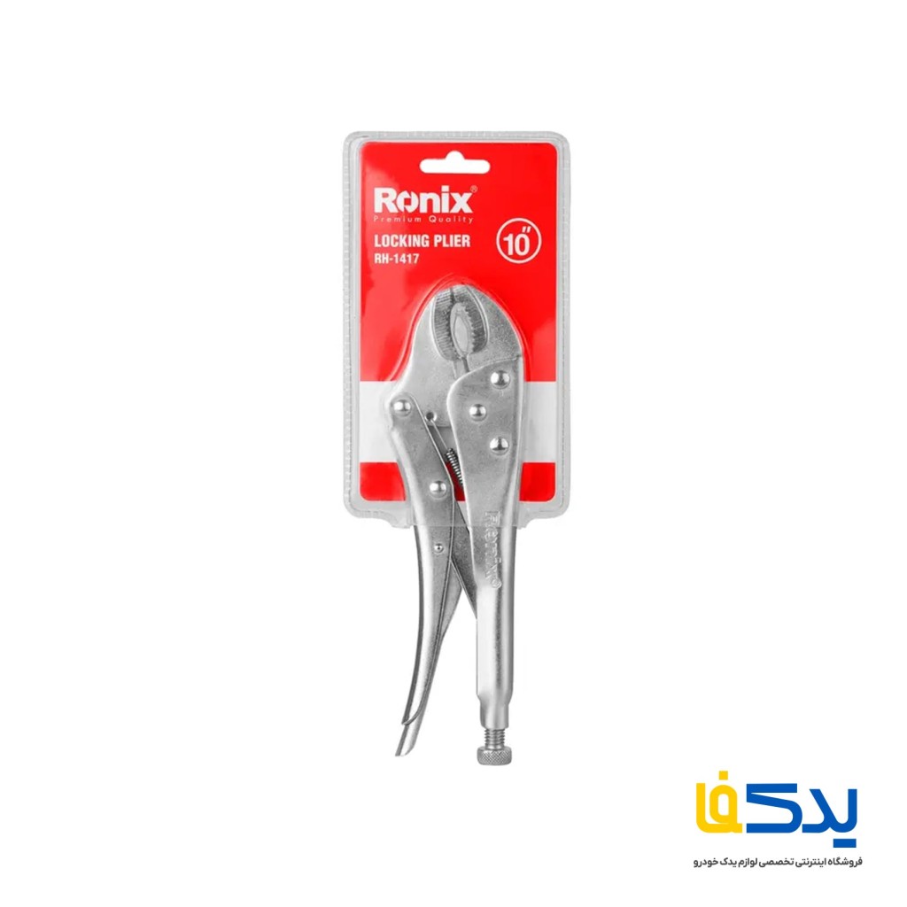 انبر قفلی رونیکس مدل RH-1417 سایز 10 اینچ، مجهز به فک ها و دندانه های سخت کاری شده مطابق با استاندارد DIN به منظور افزایش مقاومت سایشی و همچنین ثابت نگه داشتن قطعه کار است. دارای سیستم قفل کن ماشه انبر که قدرت بیشتری را برای ثابت نگه داشتن قطعه کار به کاربر می دهد و دارای طراحی ارگونومیک به منظور افزایش سهولت روند کار و کاهش خستگی دست کاربر می باشد.
