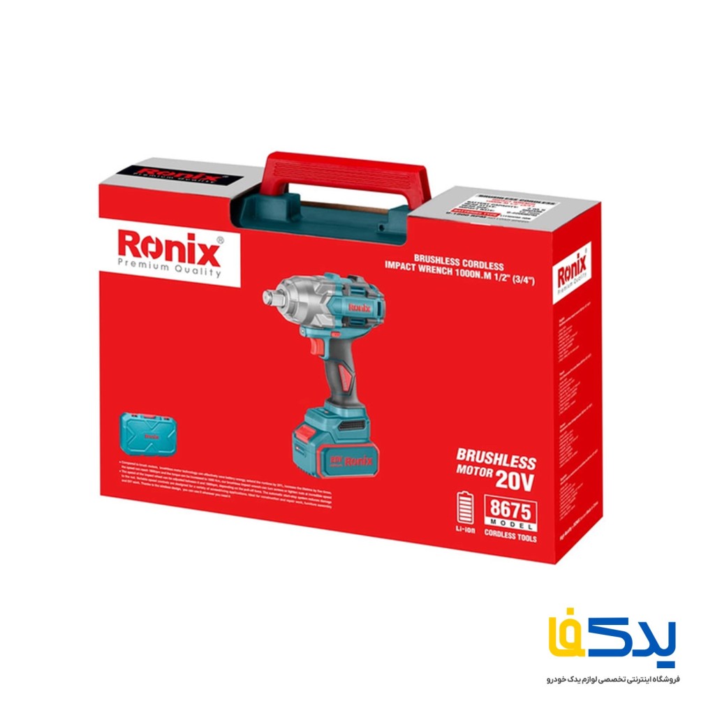 آچار بکس شارژی رونیکس مدل 8675 دو باتری لیتیوم یونی 20 ولت و 4 آمپر ساعت با گشتاور 1000 نیوتون متر که عملکرد کاملی را برای باز کردن یا بستن پیچ و مهره در اختیار شما قرار می دهد. مجهز به ابزارگیر اتوماتیک و مربعی با اندازههای 12,7 میلیمتر و 19 میلیمتر، درایو 3/4 اینچ ، حداقل ظرفیت 1000 بار پر و خالی شدن، موتوری ضد آب و براشلس، دارای بدنه ای ارگونومیک، دارای قابلیت تنظیم سرعت ، سیستم استارت و توقف خودکار و مجهز به چراغ LED برای روشن کردن سطح کار در محیط های تاریک را می توان از ویژگی های مهم این دستگاه عنوان کرد. لازم به ذکر است نرخ ضربه این آچار 2200 ضربه بر دقیقه است.